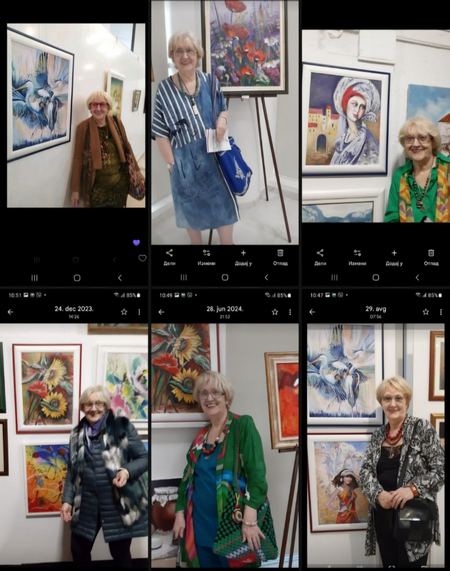 Jedan od kolaža koji sam odabrala da pokažem, gospođa Anđelka kod svojih slika na različitim izložbama.
